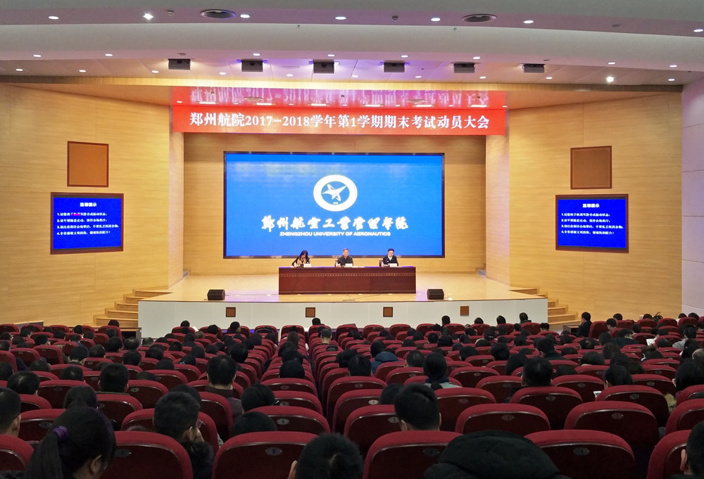 2017年12月27日下午2:30,我校在图书馆第一报告厅召开2017-2018学年第一学期期末考试动员大会。副校长贺金社、教务处处长颜敏、学生处处长张新红出席会议并讲话。各教学单位的主管教学副院长(副主任)、副书记、教学秘书、辅导员、主考教师代表和监考教师代表及教务处、学生处相关人员与会。会议由副校长贺金社主持。